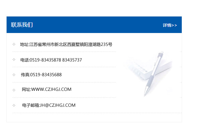 傳真:0519-83435688    郵編:213135    網址:WWW.czjhgj_com.yxqtcx.com    電子郵箱:JH@czjhgj_com.yxqtcx.com